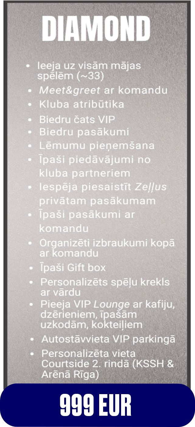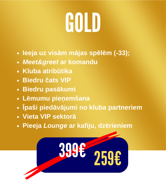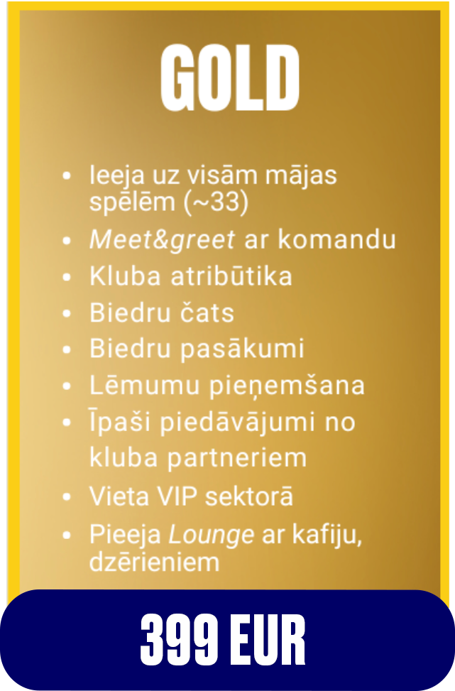 Kļūsti par kluba biedru, un aizmirsti rūpes par biļešu pirkšanu, to cenām un pieejamību. Izvēlies savu sēdvietu, kura būs Tavējā visas sezonas garumā!